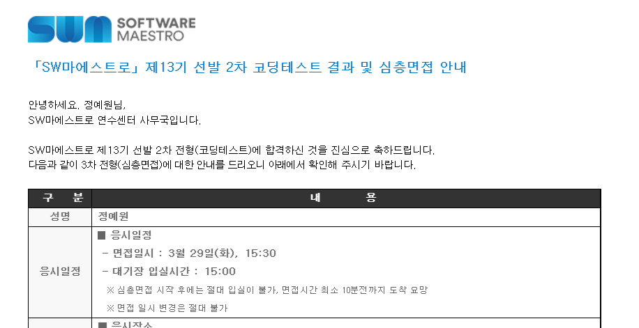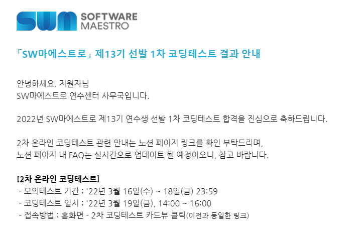 오늘 SW마에스트로 (소프트웨어 마에스트로) 13기 발표가 났다.