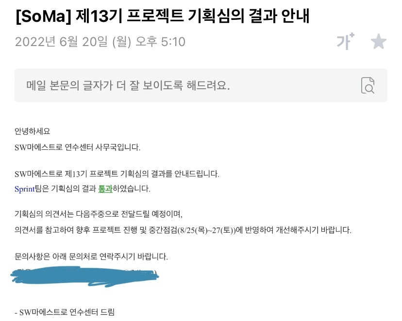 불같던 기획심의가 끝나고 3일뒤 받은 메일