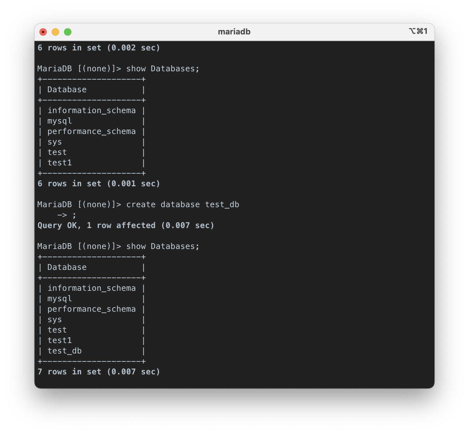 MariaDB [(none)]> show Databases;